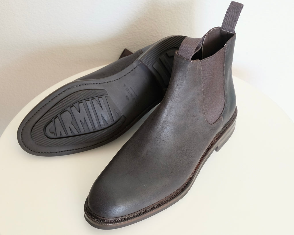 • Carmina Shoemaker Chelsea Boots in Dark Brown Waxy Commander Rough Out Suede