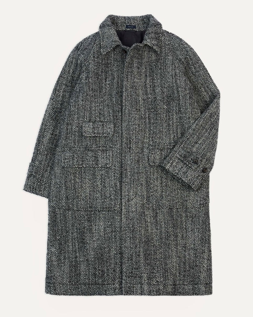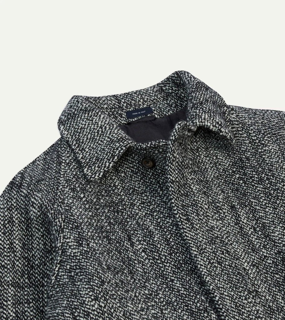 The raglan coat has long been Drake's house favorite: easy, generous, and cut to slip comfortably over anything and everything. Here it’s reimagined in a 18.5oz ‘salt and pepper’ wool, a fabric with a pleasing heft and texture that feels both practical and indulgent.