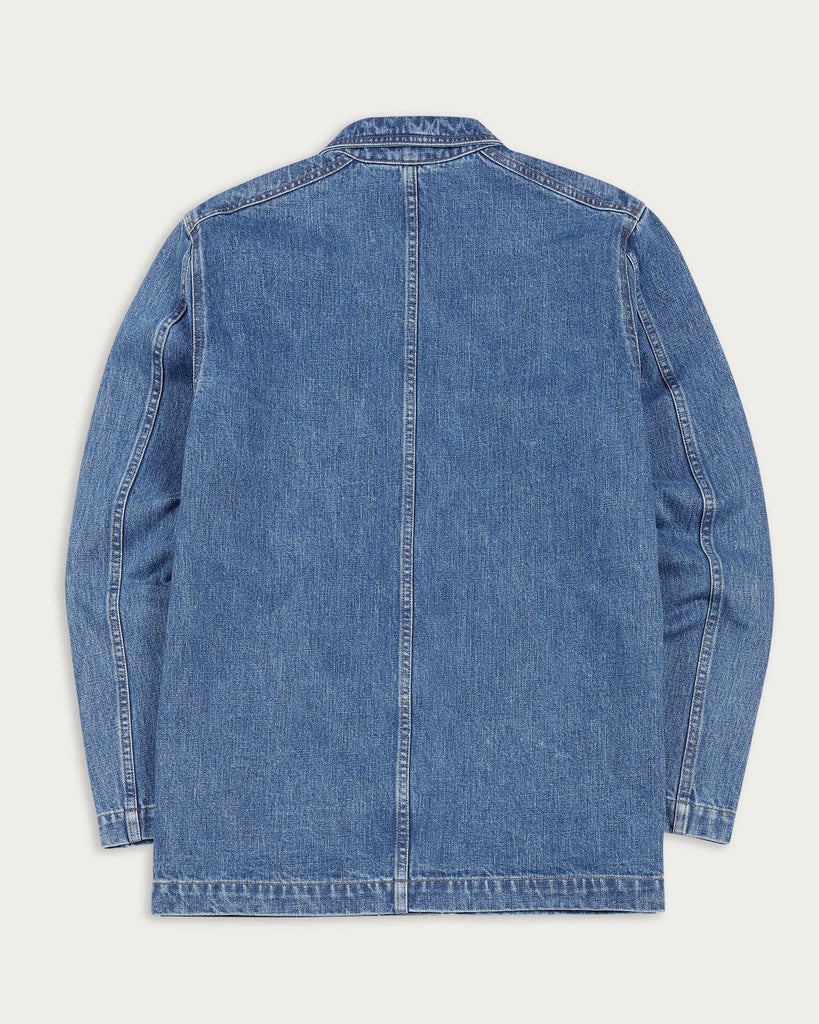 A staple of casual wardrobes the world over, the chore jacket retains its relevance on account of its stylishly spare construction, and its utmost versatility. This version is made from a rugged selvedge denim, with three outer pockets (plus a signature Drake's ticket pocket peaking out on the left-hand side), and one inner pocket. The jacket is generously cut, with a slightly boxy silhouette that recalls early 20th-century workwear—offering a nod to its utilitarian roots while maintaining a modern sense of ease and versatility.