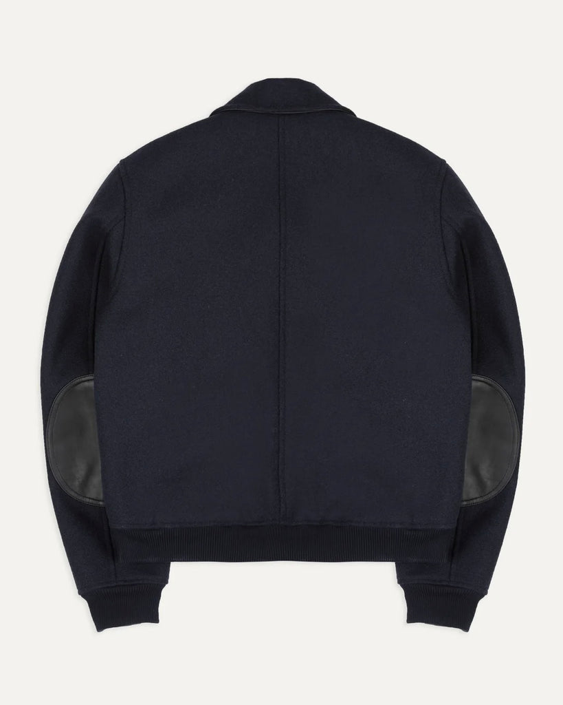 • Drake's Navy Wool and Leather A-2 Bomber Jacket